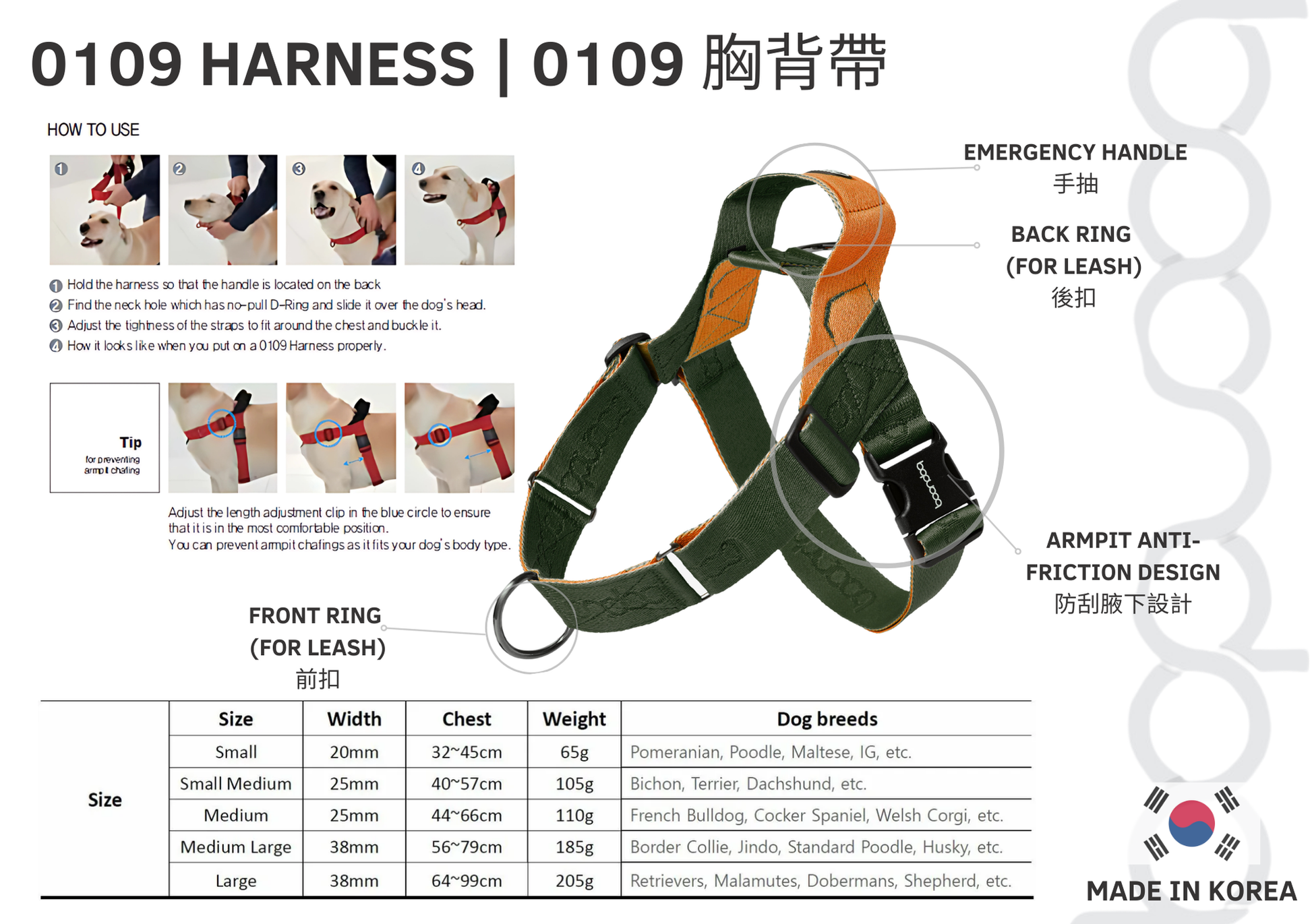 0109胸背帶的簡單穿戴方式和舒適的貼合度將幫助您和您的狗減輕胸背帶佩戴帶來的壓力。