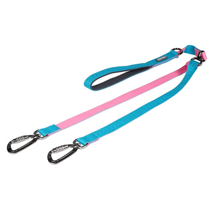 Dual Leash 雙扣防暴衝可調節式牽引繩 - 水藍粉