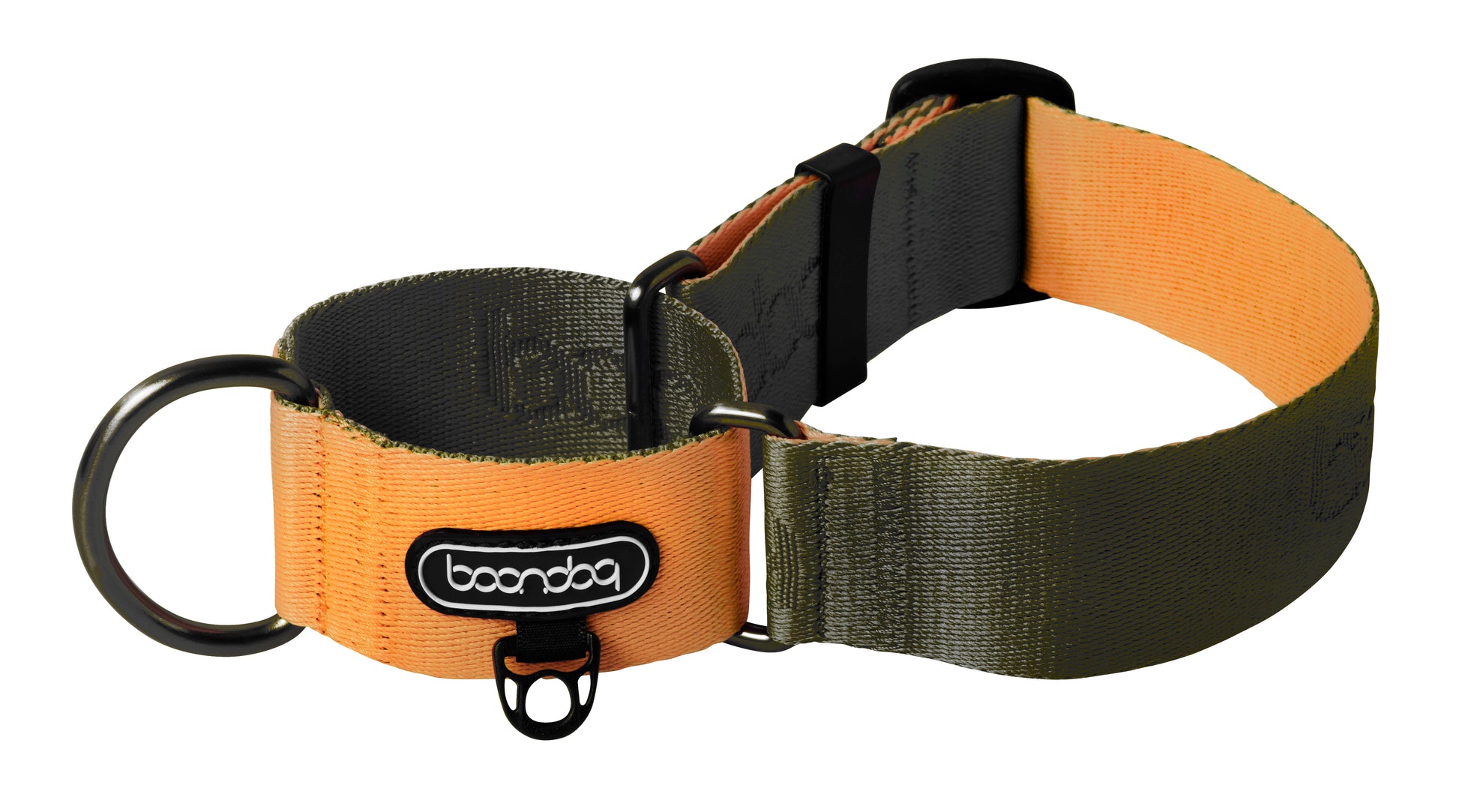 Boondog 防暴衝項圈 (寬版) 採用柔軟的織帶製成,與傳統的刺激鋼材料製成的半P項圈不同。