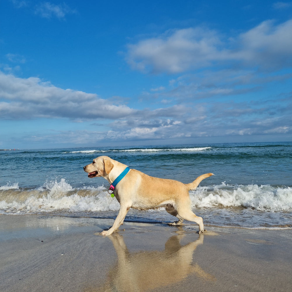 這款項圈採用寬闊的38毫米織帶。它的設計旨在通過分散力量在更大的區域上,從而減少對狗狗頸部的刺激。